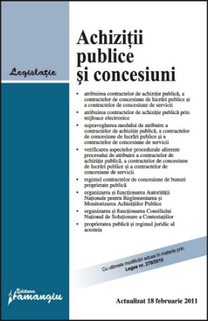 Editia de fata reuneste toate modificarile intervenite in domeniul achizitiilor publice si al concesiunilor pana la 18 februarie 2011. Sunt prezentate toate reglementarile in materie ce au ca scop flexibilizarea sistemului achizitiilor publice astfel incat sa asigure si functionarea acestuia in limitele stabilite prin Directivele Uniunii Europene in domeniu.