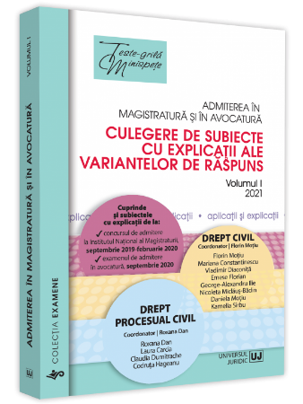 Realizata de un colectiv de autori cu mare experienta, format din procurori, judecatori, formatori ai Institutului National al Magistraturii, specialisti din Ministerul Justitiei, avocati si cadre didactice care predau la facultati de drept de prestigiu din tara, lucrarea Admiterea in magistratura si in avocatura. Culegere de subiecte cu explicatii ale variantelor de raspuns. Vol. I – Drept civil, Drept procesual civil este utila candidatilor la examenele de admitere in profesiile juridice, pentru concursul de admitere in magistratura, pentru examenele de admitere in profesia de avocat, de definitivare sau promovare, precum si studentilor facultatilor de drept, pentru examenul de licenta.