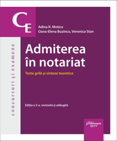Admiterea in notariat. Teste grila si sinteze teoretice reprezinta un proiect dedicat in primul rand celor care se pregatesc pentru examenul de admitere in profesia de notar, fiind structurat astfel incat sa asigure parcurgerea si asimilarea eficienta si usoara a informatiilor necesare, avand in permanenta si posibilitatea verificarii acestora.