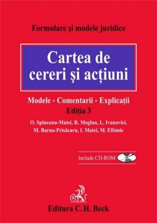 Cartea de cereri si actiuni reprezinta un ghid practic de procedura, dar si de drept material, cuprinzand peste 200 de modele de acte procedurale structurate pe materii (drept civil si procesual civil, drept procesual penal, dreptul familiei, dreptul muncii, drept comercial si contencios administrativ); fiecare cerere este insotita de ample comentarii referitoare la: natura juridica, calitate procesuala, obiect, temei juridic, mijloace de proba, taxe judiciare de timbru si timbru judiciar, instanta competenta.