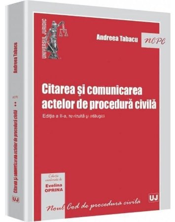 Lucrarea Citarea si comunicarea actelor de procedura civila. Editia a II-a, revizuita si adaugita se adreseaza in primul rand practicienilor, care vor putea urmari noile solutii legislative in domeniul citarii si comunicarii actelor de procedura, precum si unele interpretari posibile ale acestora, prin raportare si la jurisprudenta anterioara.