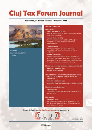 Articole. In Cluj Tax Forum Journal nr. 1/2020 prezentam o selectie de articole dupa cum urmeaza: