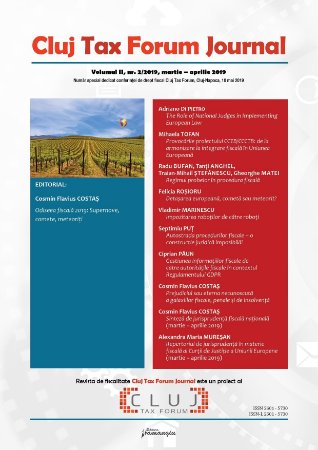 Acest numar special de primavara (nr. 2/2019) este dedicat conferintei Cluj Tax Forum – eveniment anual al facultatii de Drept, Universitatea Babes-Bolyai din Cluj Napoca –, din urzeala careia s-a si ivit proiectul Cluj Tax Forum Journal.