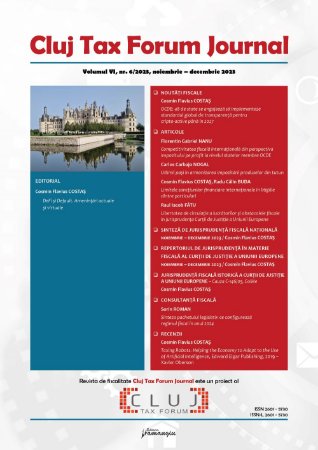 La sfarsit de an, Cluj Tax Forum Journal (6/2023) aduce spre viitor notiuni de interes din prezent si noi puncte de pornire catre un alt inceput de fiscalitate, precum: