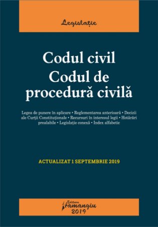 Codul civil. Codul de procedura civila reuneste textele la zi ale celor doua legi in vigoare in materie civila si de procedura civila, oferind o baza teoretica de studiu practicienilor, cadrelor didactice, studentilor, dar si tuturor celor implicati in interpretarea si aplicarea acestor dispozitii.