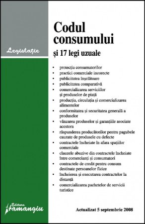 Lucrarea de fata cuprinde legea de baza in materia protejarii intereselor consumatorilor si anume Codul consumului – Legea nr. 296/2004 precum si alte 17 legi care vin in completarea acestui act normativ, toate actualizate pana la data de 5 septembrie 2008.