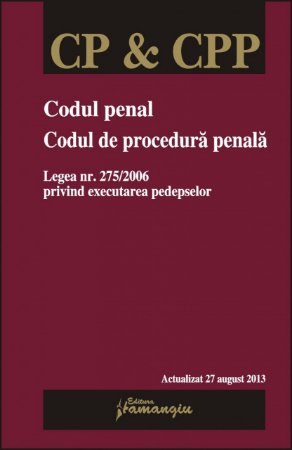 Cele doua titluri – Codul penal si Codul de procedura penala –, actualizate la 27 august 2013, sunt reunite intr-o singura carte si, alaturi de Legea privind executarea pedepselor nr. 275/2006, ofera o baza teoretica de studiu, reprezentand un instrument facil si util atat practicienilor, cat si studentilor, avand inserate recursurile in interesul legii in materie si decizii ale Curtii Constitutionale, precum si trimiteri la legislatia speciala.
