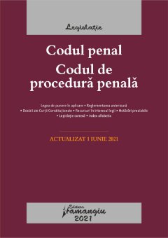 Codul penal. Codul de procedura penala. Legile de executare reuneste cele doua coduri penale in vigoare si, pe langa acestea, include si cele doua legi de executare a pedepselor, a masurilor privative si neprivative de libertate – Legile nr. 253 si nr. 254 din 2013, toate actualizate la data de 1 iunie 2021, fiind avute in vedere modificarile si completarile aduse in materie prin Legea nr. 130/2021 (M. Of. nr. 493 din 12 mai 2021) si Legea nr. 146/2021 (M. Of. nr. 515 din 18 mai 2021).
