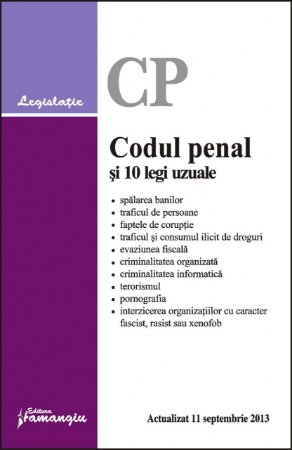 Lucrarea contine textul Codului penal actualizat pana la data de 11 septembrie 2013, insotit de deciziile Curtii Constitutionale de admitere a exceptiilor de neconstitutionalitate, de deciziile Inaltei Curti de Casatie si Justitie pronuntate in solutionarea recursurilor in interesul legii in materie, precum si de trimiteri la legislatia conexa.