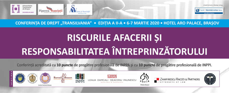 În perioada 6-7 martie 2020 sunteți invitați să participați la a II-a ediție a Conferinței de drept „Transilvania”, care se va desfășura la Hotel Aro Palas - Brașov.