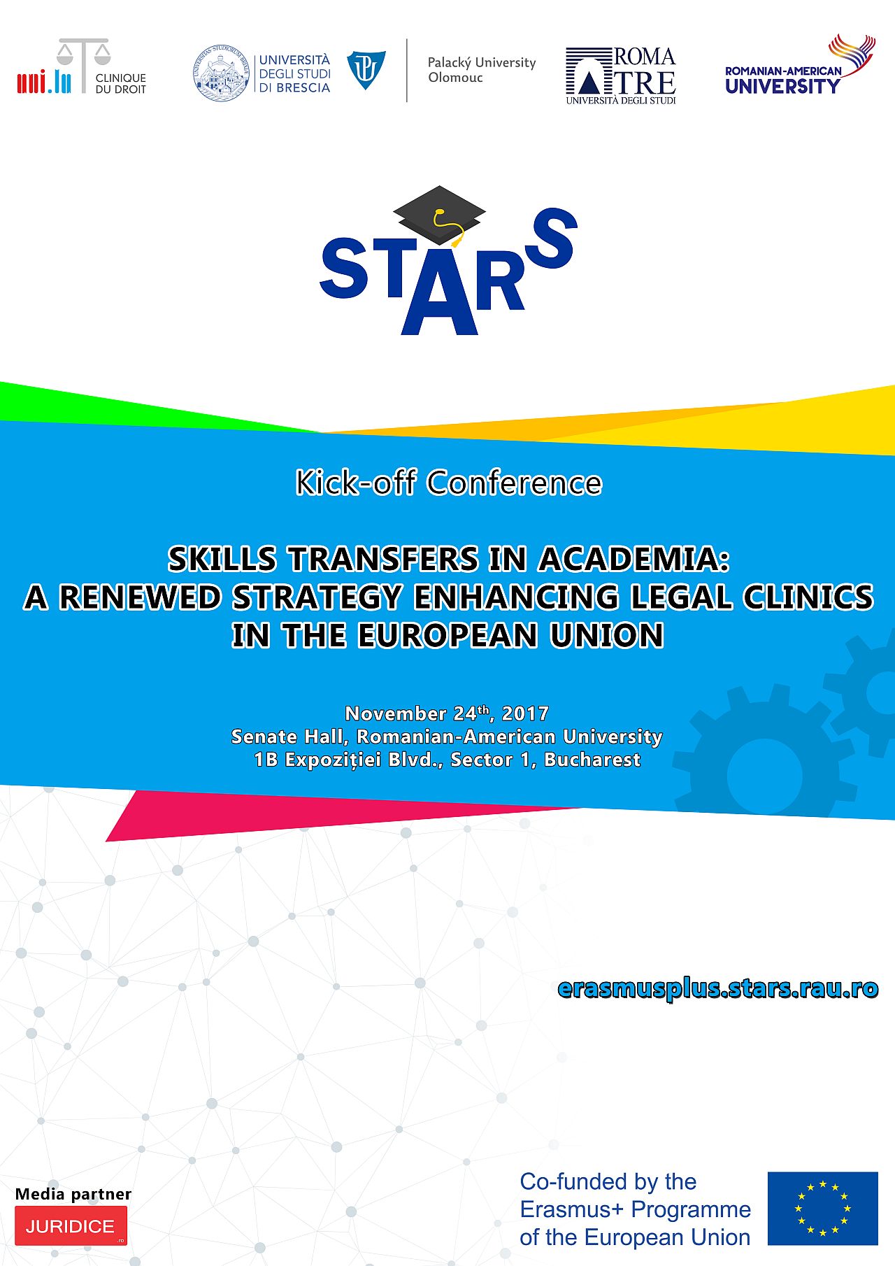 Centrul de Drepturile Omului și Migrație din cadrul Universității Romano-Americane, împreună cu Universitatea din Luxemburg, Departamentul de Drept al Universității Roma Tre, Universitatea Palacky din Olomouc și Universitatea din Brescia au placerea să vă invite să participați la conferința internațională prilejuită de lansarea proiectului european „Skills transfers in academia: a renewed strategy enhancing legal clinics in the European Union”, un proiect consacrat educației și cercetării juridice practice.