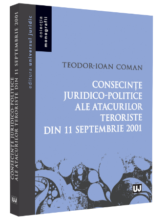 Consecinte juridico-politice ale atacurilor teroriste din 11 septembrie 2001 este o monografie de drept international public, care si-a propus sa analizeze dintr-o perspectiva pragmatica si realista consecintele evenimentelor din 11 septembrie. Aceasta reprezinta teza de doctorat a autorului, un notar public care si-a urmat interesul pentru dreptul international public, prin studii masterale la Facultatea de Drept a Universitatii din Viena si studii doctorale coordonate de prof. univ. dr. Constantin Valentin, in cadrul Facultatii de Drept a Universitatii de Vest din Timisoara. Rezultatul cercetarii il reprezinta o teza care nu se concentreaza pe oferirea de raspunsuri directe, ci mai degraba se explica prin ea insasi.