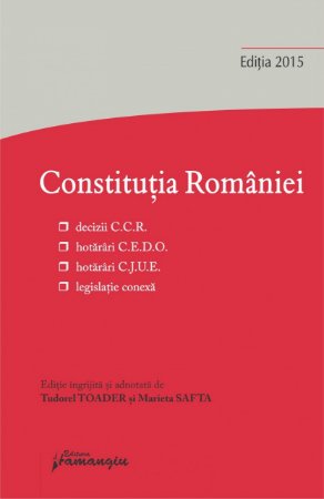In acest context, prof. univ. dr. Tudorel Toader, judecator la Curtea Constitutionala, si lector univ. dr. Marieta Safta, prim magistrat-asistent la Curtea Constitutionala, aduc in atentia cititorilor lucrarea „Constitutia Romaniei – decizii ale Curtii Constitutionale, hotarari C.E.D.O., hotarari C.J.U.E., legislatie conexa”, care, dupa cum sugereaza si titlul, are un continut complex.