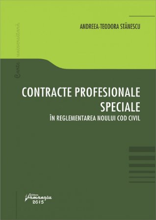 Referitor la contractele speciale, lucrarea Contracte profesionale speciale in reglementarea noului Cod civil cuprinde o analiza a regimului juridic al urmatoarelor contracte: contractul de furnizare, contractul de report, contractul de comision, contractul de consignatie, contractul de agentie, contractul de intermediere, contractul de cont curent, contractul de cont curent bancar, contractul de depozit bancar, contractul de facilitate de credit si contractul de inchiriere a casetelor de valori. Cu privire la acestea au fost analizate, in principal: mecanismul calificarii unui acord de vointe drept un anumit contract, mecanismul incheierii contractului, efectele acestuia si incetarea.