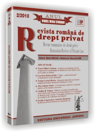 Tocmai de aceea, si venind in intampinarea acestor necesitati sau tendinte, Revista romana de drept privat isi propune sa constituie un cadru adecvat, deschis oricaror analize, discutii si comentarii aprofundate si deopotriva critice ale problemelor actuale sau viitoare din sfera dreptului privat, care sa se situeze la nivelul exigentelor teoretice si practice ale secolului XXI si sa raspunda astfel nevoilor de perfectionare sau de reforma a institutiilor dreptului privat, de adaptare sau unificare a practicii judiciare, dar si de elaborare a unor noi constructii teoretice care sa fundamenteze politicile de reforma economica, sociala ori institutionala, dupa caz.