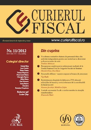- articolul semnat de Emanuela Matei (cercetator in stiinte juridice, Facultatea de Drept, Universitatea din Lund, Suedia) aduce in discutie problema limitelor autonomiei fiscale ale statelor membre in situatiile transfrontaliere, aratandu-se ca exercitarea autonomiei fiscale este conditionata de respectarea dreptului UE, iar domeniul ei de referinta este definit ca un spatiu rezidual obtinut prin extragerea sferei dispozitiilor fiscale deja armonizate, din totalitatea masurilor fiscale in vigoare.
