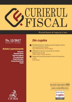 Penultimul numar din acest an al revistei Curierul fiscal, numarul 11, prezinta aspecte practice din domniul fiscalitatii ce vor fi aplicabile din 2018 si aspecte importante in practica fiscala si contabila, incluzand si ultimele noutatile legislative in materie. Pe scurt, va prezentam continutul revistei.