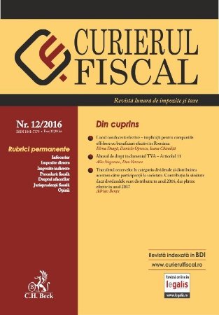 Ultimul numar al revistei Curierul fiscal puncteaza cateva aspecte importante in practica fiscala si contabila, incluzand si ultimele noutatile legislative in materie. Pe scurt, va prezentam continutul revistei.