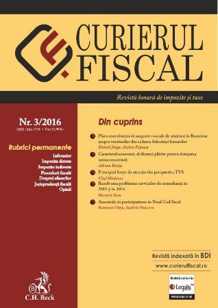 Numarul din luna martie a revistei Curierul fiscal aduce in atentia cititorilor o multime de subiecte controversate si dificile din domeniul fiscalitatii: regimul fiscal al PFA si microintreprinderii, din perspectiva Noului Cod fiscal, reincadrarea activitatii independente ca activitate dependenta in Noul Cod fiscal, precum si asocierile in participatiune asa cum sunt reglementate de Noul Cod fiscal. Nu in ultimul rand, puteti citi pe scurt despre caracterul economic al diurnei platite pentru detasarea intracomunitara sau despre regimul serviciilor promotionale si al reducerilor comerciale.