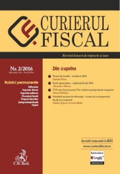 Numarul din luna aprilie a revistei Curierul fiscal se apleaca asupra unor subiecte de actualitate pentru fiscalitatea din Romania: impozitul pe cladiri, aplicarea in practica a unor noi prevederi din Noul Cod de procedura fiscala, probleme legate de TVA, dar si prezentarea si, pe alocuri, analizarea jurisprudentei nasionalesi europene in materie de taxe.