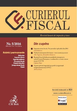 Curierul fiscal din luna mai include rubricile uzuale de infocurier si agenda obligatiilor fiscale si o serie de articole care abordeaza teme precum impozitele si taxele locale, noua viziune CCCTB sau traficul international de bunuri.
