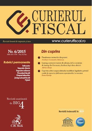 - Articolul lui Emilian-Constantin Miricescu (Conf.univ.dr., Departamentul de Finante, Facultatea de Finante, Asigurari, Banci si Burse de Valori, ASE Bucuresti) prezinta fiscalizarea veniturilor din premii, in contextul intrarii in vigoare a importante modificari legislative aferente fiscalizarii veniturilor din jocuri de noroc in februarie 2015, pe baza unui studiu de caz