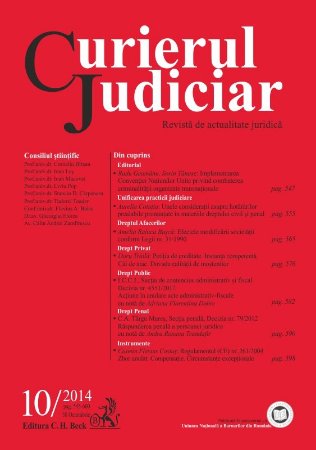 Numarul din luna octombrie al Revistei Curierul Judiciar va propune subiecte de maxima importanta juridica.