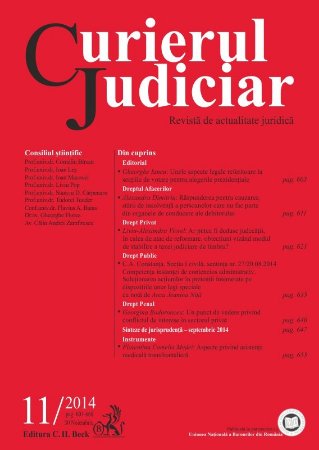 Numarul din luna noiembrie al Revistei Curierul Judiciar va propune subiecte de maxima importanta juridica.