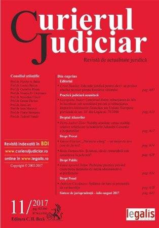 Editorialul din Curierul Judiciar, Nr. 11/2017 este semnat de judecator Cristi Danilet, coordonatorul proiectului EDUIURIS – un proiect national neguvernamental absolut necesar pentru Romania viitorului: educatie juridica pentru elevi. Motivatia principala a acestui proiect este ca „tinerii de azi au nevoie de educatie civica, etica, juridica, religioasa, sexuala, politica, rutiera, nutritionala. Dorim sa construim viitorul cu si pentru acesti tineri. Ne dorim ca ei sa ramana, sa traiasca, sa munceasca in Romania, tara careia noi ii suntem fideli!” Articolul prezinta proiectul, scopul acestuia, ce este de facut si cum se face, o evaluare a activitatilor desfasurate pana acum, precum si un apel catre juristii care isi doresc sa se implice.