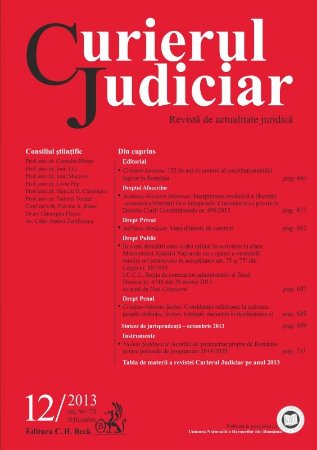 Numarul din luna decembrie al Revistei Curierul Judiciar va propune subiecte de maxima importanta juridica.