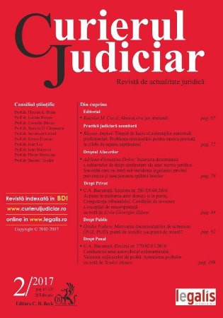 Numarul din luna februarie al Revistei Curierul Judiciar va propune subiecte de maxima importanta juridica.