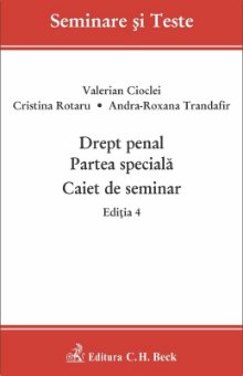 Acest Caiet de seminar se doreste a fi un mijloc de fixare a cunostintelor de baza in materia partii speciale a dreptului penal, motiv pentru care cuprinde o scurta trecere in revista a notiunilor teoretice din titlurile, capitolele si sectiunile stabilite in tematica, spete cu diferite grade de complexitate, intrebari si teste grila. Caietul nu ofera si rezolvarea spetelor, deoarece, fiind conceput ca un instrument de lucru pentru seminare, nu s-a dorit canalizarea atentiei catre o solutie pretins corecta, ci s-a urmarit punctarea unor probleme care sa suscite discutii, precum si formarea abilitatii de a argumenta.