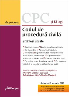Prezenta lucrare are, asadar, avantajul de a aduce in filele sale primele explicatii concrete ale textelor si institutiilor reglementate in Codul de procedura civila, astfel cum acestea au fost recent modificate, cuprinzand, de asemenea, referiri si trimiteri la intreaga doctrina si jurisprudenta, in special a Inaltei Curti de Casatie si Justitie, precum si a Curtii Constitutionale dezvoltate in toti anii de aplicare practica a Codului, oferind cititorului un volum de informatii complet, la zi, bine si facil sistematizat, contribuind la insusirea si consolidarea procedurii civile intr-un mod deplin si riguros.