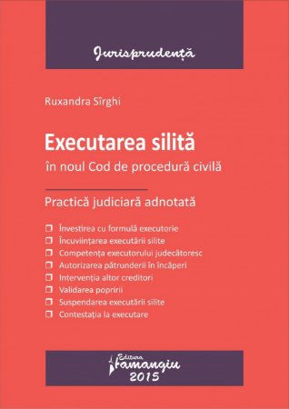 Culegerea Executarea silita in noul Cod de procedura civila contine o jurisprudenta diversificata, structurata pe urmatoarele aspecte: investirea cu formula executorie, incuviintarea executarii silite, autorizare patrundere in incaperi, interventia in cursul executarii silite a creditorilor chirografari, suspendarea executarii silite, validarea de poprire, contestatia la executare.