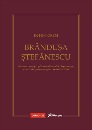 Volumul In Honorem Brandusa Stefanescu. Interpretarea si aplicarea dreptului. Suprematie, prioritate, preeminenta si subsidiaritate s-a nascut datorita entuziasmului si dorintei celor care au avut onoarea de a colabora, in diferite etape ale vietii, cu una dintre marile personalitati ale dreptului si de a-si aduce omagiul, pretuirea si multumirea pentru Minunata Doamna a Dreptului Romanesc – Omul si prof. univ. dr. Brandusa Stefanescu, mentor, arbitru, fost judecator la Inalta Curte de Casatie si Justitie.
