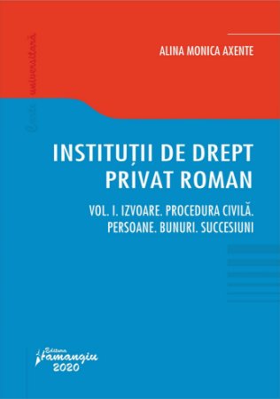 Institutii de drept privat roman. Vol. I. Izvoare. Procedura civila. Persoane. Bunuri. Succesiuni reprezinta primul volum din cursul de drept roman adresat studentilor facultatilor de drept aflati in primul an de studiu, fiind conceput spre a raspunde unei duble nevoi: atat aceea de introducere, cat si de incursiune aprofundata in aceasta arie de drept. In speranta ca nu vor intrerupe niciodata cautarea sensului din spatele fiecarui dat, prezentul curs nu se doreste a fi doar un instrument util in intelegerea materiei dreptului roman, ci si o prima treapta pe care studentii o vor parcurge pe drumul spre maiestria profesionala.