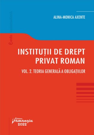 Dupa publicarea, in anul 2020, a primei parti din cursul dedicat dreptului roman, intitulata Institutii de drept privat roman. Vol. I. Izvoare. Procedura civila. Persoane. Bunuri. Succesiuni, autoarea Alina-Monica Axente revine si cu partea a doua a aceluiasi curs, intitulata Institutii de drept privat roman. Vol. II. Teoria generala a obligatiilor. Ambele volume sunt adresate, desigur, studentilor facultatilor de drept aflati in primul an de studiu, fiind concepute spre a raspunde unei duble nevoi: atat aceea de introducere, cat si de incursiune aprofundata in aceasta arie de drept.