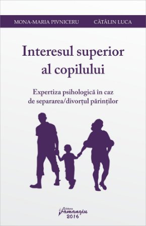 Pe un fundal juridic constituit din analiza interesului superior al copilului, ca matrice referentiala ce priveste intregul ansamblu de reglementari privitoare la copil si care se rasfrange asupra oricaror masuri care-l vizeaza, indiferent cine le-ar lua (criterii legale generale si speciale de stabilirea interesului superior al copilului; garantii procesuale privind respectarea interesului superior al copilului; dificultatea privind stabilirea interesului superior al copilului prin adminstrarea probei cu martori etc.), lucrarea efectueaza o analiza psihologica cu caracter de noutate asupra nevoilor copiilor cu parinti divortati, impactul divortului asupra acestora, investigarea opiniei copilului precum si evaluarea relatiilor de atasament, elemente indispensabile in efectuarea expertizei psihologice.