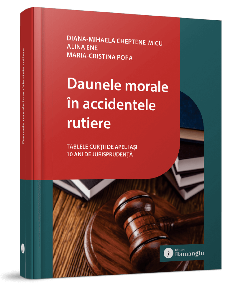 invită colegii magistrați, avocați, consilieri juridici și cadre didactice, precum și pe specialiștii în domeniul asigurărilor să participe la o dezbatere juridică prilejuită de apariția cărții Daunele morale în accidentele rutiere. Tablele Curții de Apel Iași – 10 ani de jurisprudență, realizată de Diana-Mihaela Cheptene-Micu, Alina Ene și Maria-Cristina Popa – judecători la Curtea de Apel Iași și publicată de Editura Hamangiu.