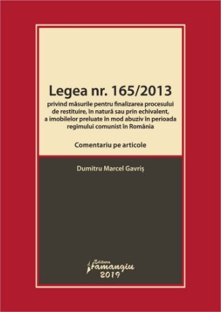 Desi intr-o suma de cazuri individuale procedurile de restituire s-au finalizat, raportat la ansamblul procesului de restituire la nivel national, se poate aprecia ca aplicarea Legii nr. 165/2013 a ajuns cel mult la jumatatea drumului. Asadar, un comentariu pe articole al acestui act normativ, astfel cum este Legea nr. 165/2013 privind masurile pentru finalizarea procesului de restituire, in natura sau prin echivalent, a imobilelor preluate in mod abuziv in perioada regimului comunist in Romania. Comentariu pe articole, este bine-venit, cu atat mai mult cu cat valorifica jurisprudenta nationala si europeana relevanta.