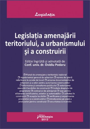 Cea de a treia editie a culegerii Legislatia amenajarii teritoriului, a urbanismului si a construirii, ingrijita si adnotata de conf. univ. dr. Ovidiu Podaru, isi propune sa confere coerenta in materia simplist si simplificat denumita a urbanismului. De altfel, pana in acest moment este si singura colectie a acestor legi care are un titlu corect si complet, caci materia in cauza presupune trei activitati distincte: amenajarea teritoriului, activitatea globala, integratoare care incearca sa cuprinda intr-un tot coerent intregul teritoriu al Romaniei (planurile de amenajare a teritoriului sunt, de altfel, instrumentele tehnico-juridice cu cea mai mare forta juridica, ele trebuind a fi preluate, ulterior, in documentatiile de urbanism); urbanismul, activitatea de elaborare a unui sistem logic de reguli de construire, in special in intravilanul localitatilor si, in fine, chiar aceasta construire, activitatea de edificare efectiva a imobilelor de toate categoriile, cu reversul acesteia, desfiintarea constructiilor.