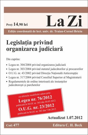Culegerea, ajunsa la editia a 11-a, cuprinde Legea nr. 304/2004 privind organizarea judiciara, cu ultimele modificari si completari, si alte acte normative importante, referitoare la statutul judecatorilor si procurorilor, Consiliul Superior al Magistraturii sau Directia Nationala Anticoruptie.