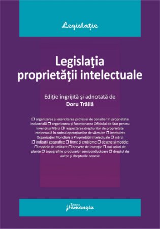 Lucrarea Legislatia proprietatii intelectuale se adreseaza in principal studentilor facultatilor de drept care au in programa disciplina dreptul proprietatii intelectuale, fiind structurata pe doua parti, astfel: partea I, Proprietatea industriala, cuprinde 28 de acte normative (dispozitii generale; marci, indicatii geografice, firme; desene si modele; modele de utilitate; inventii; noi soiuri de plante; topografiile produselor semiconductoare), iar partea a II-a, Dreptul de autor si drepturile conexe, include 2 acte fundamentale in materie.