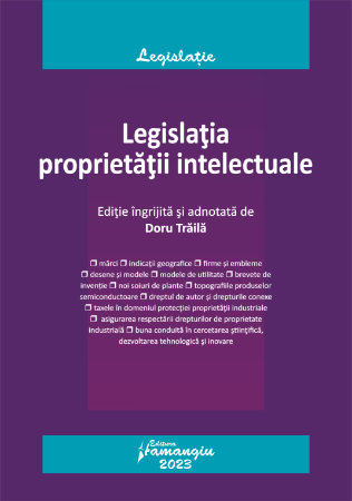 Lucrarea Legislatia proprietatii intelectuale se adreseaza in principal studentilor facultatilor de drept care au in programa disciplina dreptul proprietatii intelectuale, fiind structurata pe doua parti, astfel: partea I, Proprietatea industriala, cuprinde 27 de acte normative (dispozitii generale; marci, indicatii geografice, firme; desene si modele; modele de utilitate; inventii; noi soiuri de plante; topografiile produselor semiconductoare), iar partea a II-a, Dreptul de autor si drepturile conexe, include 2 acte fundamentale in materie.