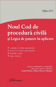 -Legea nr. 138/2014 pentru modificarea si completarea Legii nr. 134/2010 privind Codul de procedura civila, precum si pentru modificarea si completarea unor acte normative conexe (M. Of. nr. 753 din 16 octombrie 2014).