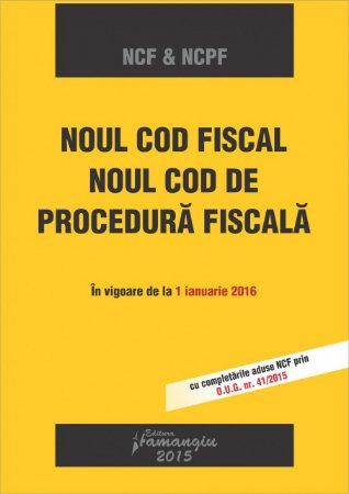 Legea nr. 227/2015 privind Codul fiscal (publicata in M. Of. nr. 688 din 10 septembrie 2015) este redata in forma deja completata prin Ordonanta de urgenta a Guvernului nr. 41/2015 (M. Of. nr. 733 din 30 septembrie 2015) si este impartita in 11 titluri cu o structura nu mult diferita de aceea a vechiului cod.
