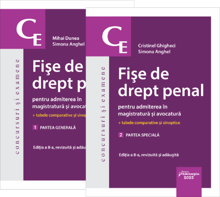 Si in cazul editiei 2025, cartea Fise de drept penal pentru admiterea in magistratura si avocatura este tiparita in doua volume: Vol. 1. Partea generala si Vol. 2. Partea speciala.
