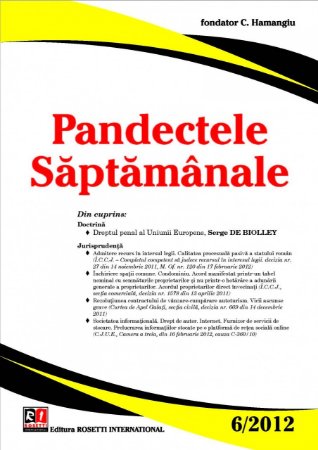 Pandectele Saptamanale aduce cititorului informatie rapida, diversa si continut original. Rubrica de doctrina are doua componente: