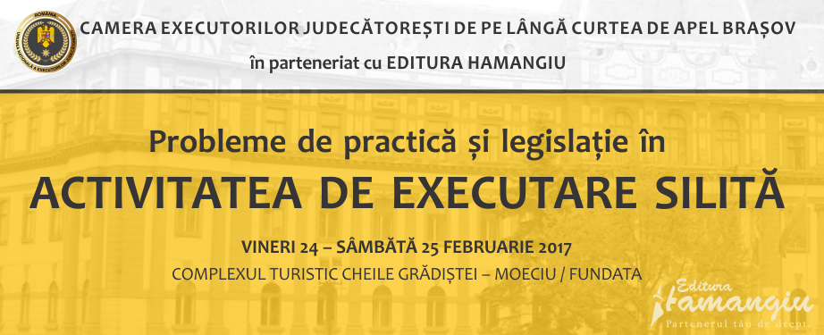 În cadrul conferinței va avea loc și lansarea volumului Executarea silită în Codul de procedură civilă – comentariu pe articole, autori Mădălina DINU și Roxana STANCIU.