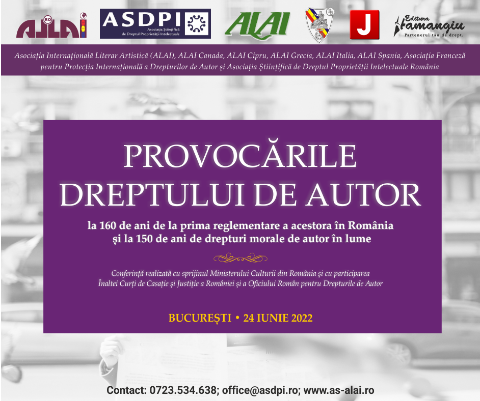„Provocările dreptului de autor la 160 de ani de la prima reglementare a acestora în România și la 150 de ani de drepturi morale în lume”